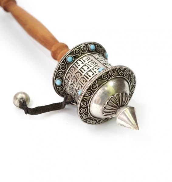 Молитовний барабан на ручці у срібному кольорі