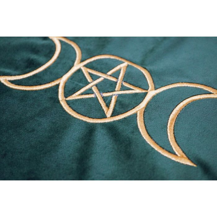 Скатертина для ворожіння оксамит Вікка зелена вишивка