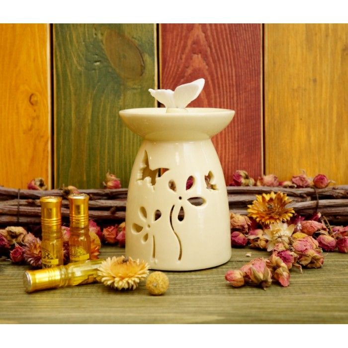 Аромалампа керамическая "Бабочка в цветах" Светло желтая