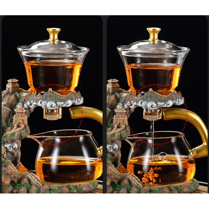 В ручке чахая встроен магнитный механизм, приводящий металлический элемент в движение и обеспечивающий точный и аккуратный слив настоя. Такой принцип работы делает заваривание простым, чистым и эффектным. Набор подходит как для ежедневного чаепития, так и для угощения близких и гостей. Идеален для дома, офиса и чайных церемоний.