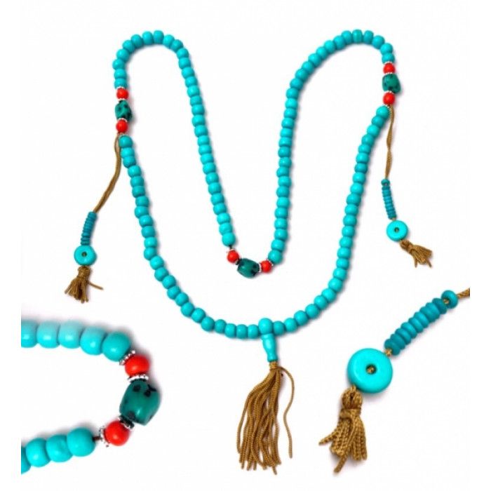 Чотки з кістки 10 мм. 108 бусин бірюзові