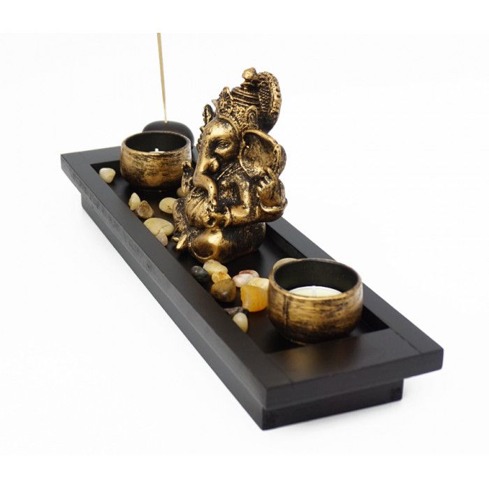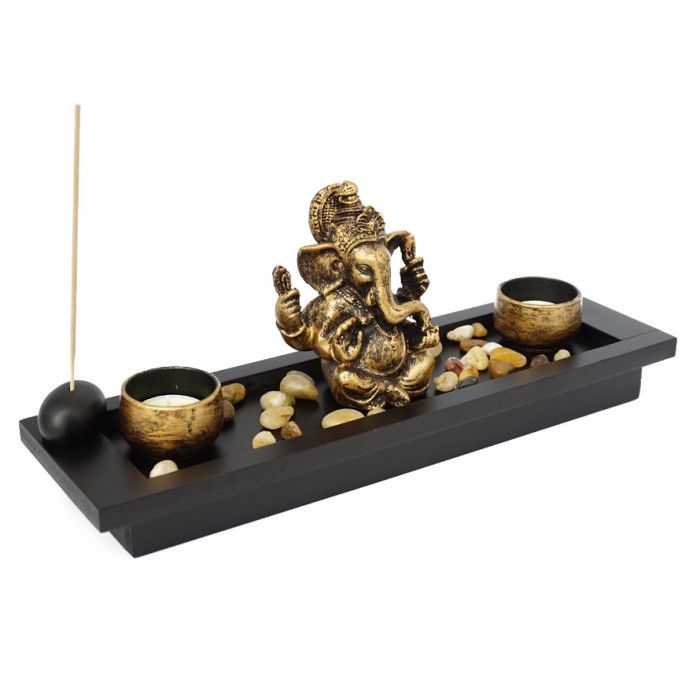 Настільний сад каменів, як правило, комплектується статуеткою божества. Це може бути Хотей, Будда або даоський чернець ... Це для того, щоб вам не було самотньо. Додайте свічку або ароматичну паличку і вам вже тепліше на душі ... Одним словом, мініатюрний сад каменів це відмінний інструмент.