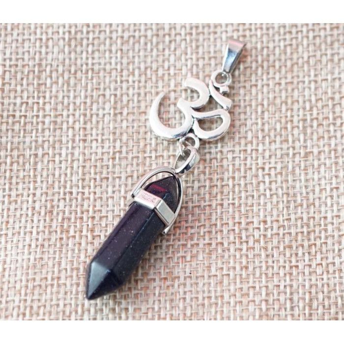 Кулон білий метал "Ом" вставка Синій авантюрин