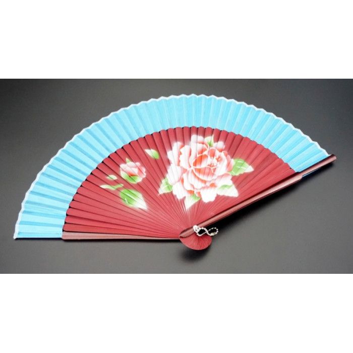 Віяло сатин + бамбук №1 блакитний